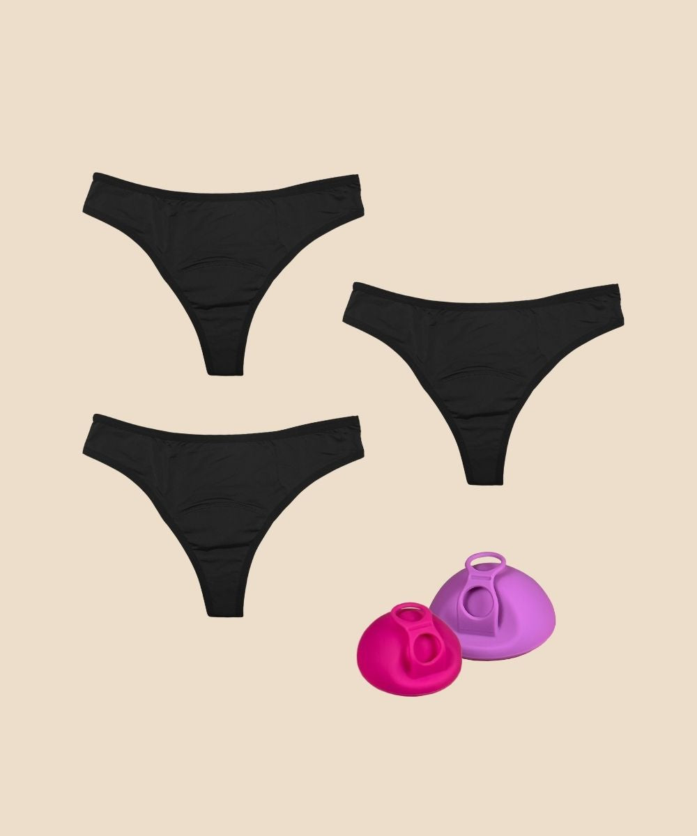 Recomendamos comenzar con 3 a 5 para que estés cubierta durante todo tu período sin tener que lavar ropa. Prueba diferentes flujos para descubrir qué estilos funcionan mejor para tu flujo.