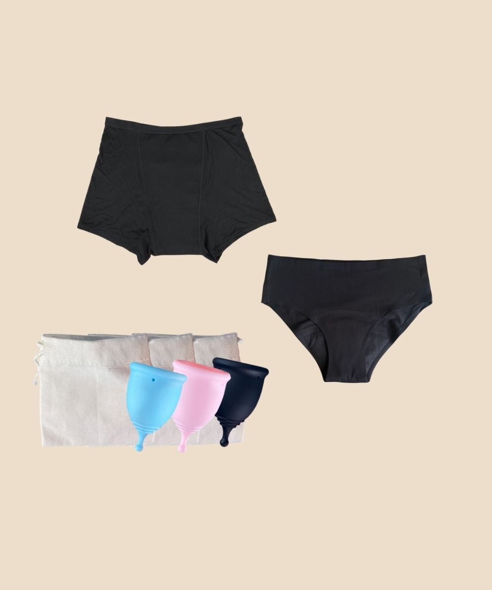 Recomendamos comenzar con 3 a 5 para que estés cubierta durante todo tu período sin tener que lavar ropa. Prueba diferentes flujos para descubrir qué estilos funcionan mejor para tu flujo.
