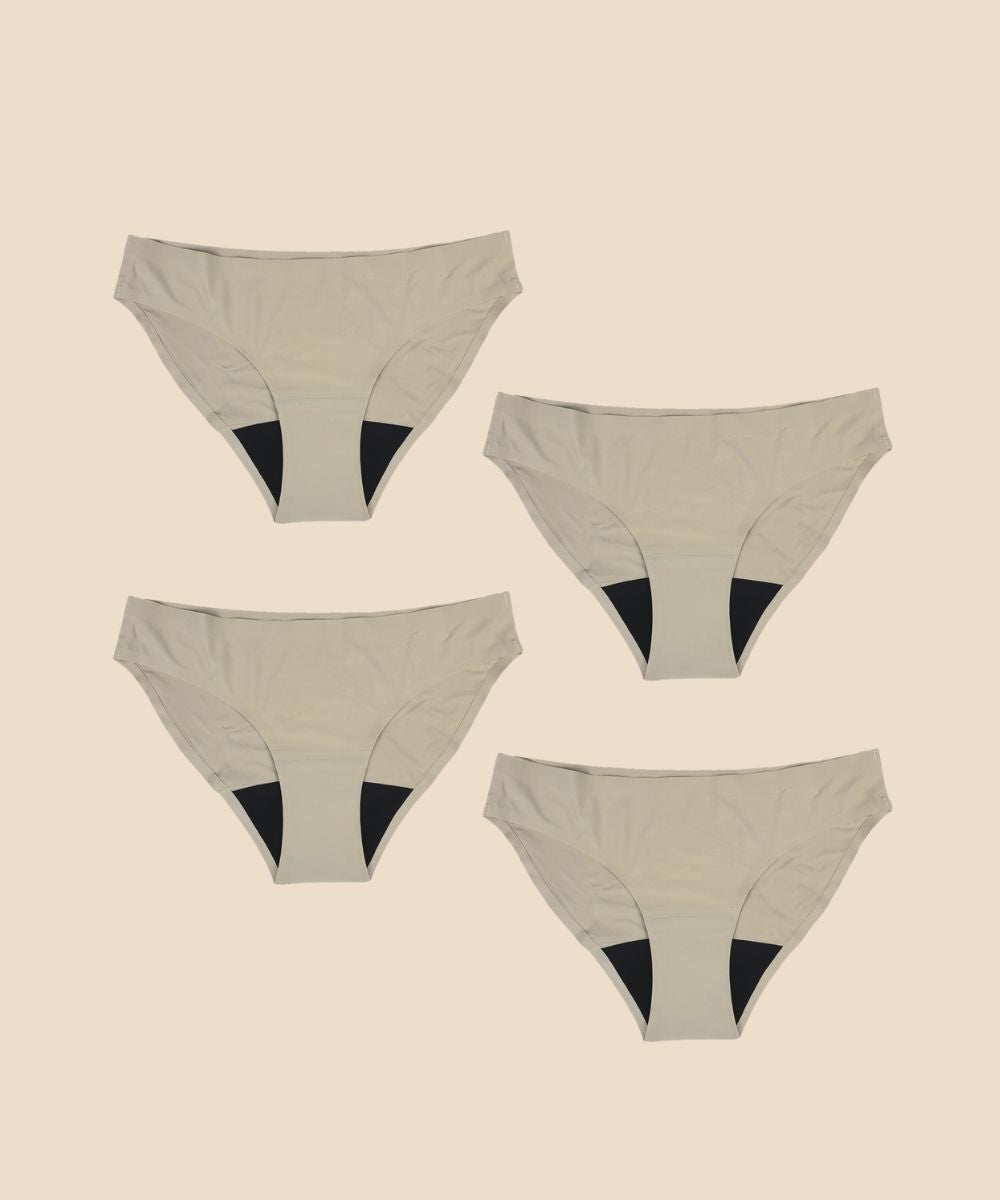 Recomendamos comenzar con 3 a 5 para que estés cubierta durante todo tu período sin tener que lavar ropa. Prueba diferentes flujos para descubrir qué estilos funcionan mejor para tu flujo.
