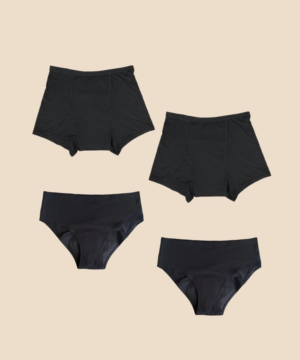 Recomendamos comenzar con 3 a 5 para que estés cubierta durante todo tu período sin tener que lavar ropa. Prueba diferentes flujos para descubrir qué estilos funcionan mejor para tu flujo.
