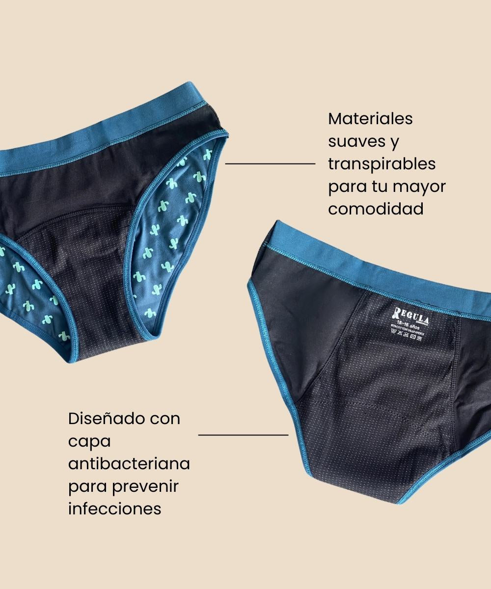 Nuestros calzones menstruales para niñas ofrecen comodidad y protección todo el día. ¡La opción ideal para niñas seguras y protegidas que empiezan su primer periodo!